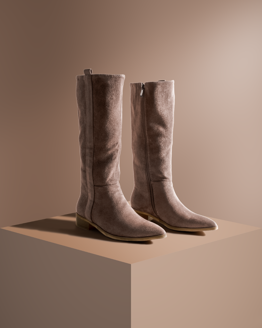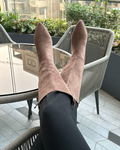 Crafted in luxurious taupe suede, these boots embody understated elegance. Their timeless silhouette transitions effortlessly from winter brunches to evening soirées, adding warmth and sophistication to every step.